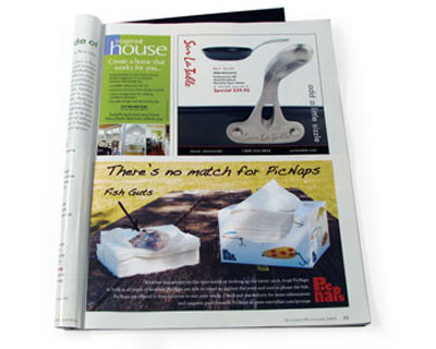 This proposed packaging design utilizes package weighting to relieve picnicers of fly-away napkins. pieces are proposed artwork.