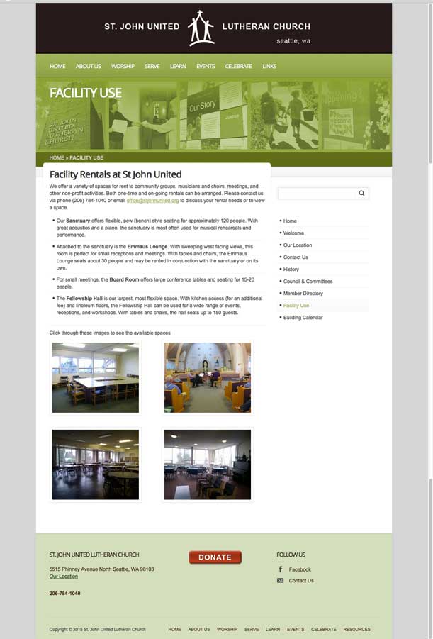 I had the pleasure to work with St John United Lutheran Church to migrate their site over to WordPress. Their site went from 5 hand-coded pages to almost 40 pages. By using a CMS, I made it eaier for them to update their site.