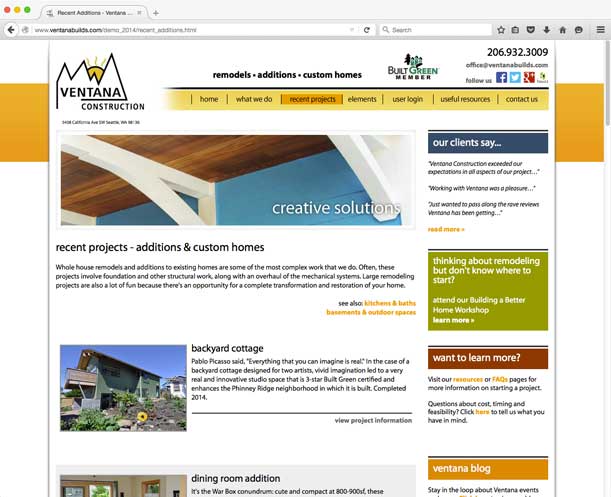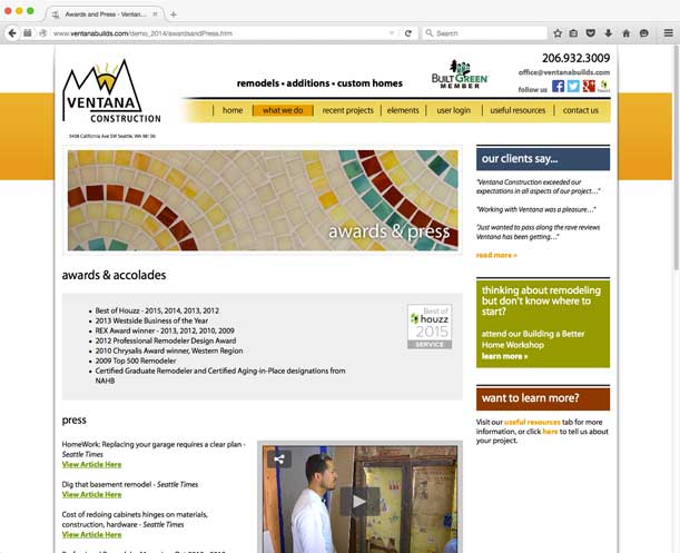 I have had the pleasure to maintain this website since 2008. My work has included updating the imagery on the site, including redesigning the home page, adding larger project views on the recent projects pages, adding additional category pages. I continue to find ways for adding additional relevant information.